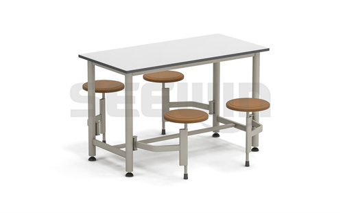 優(yōu)質(zhì)鋼框架、桌腿帶噴塑,防火板桌面,耐腐蝕性強(qiáng),穩(wěn)定耐用。就餐座位可伸縮收納,節(jié)省收納空間。