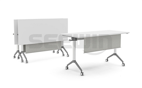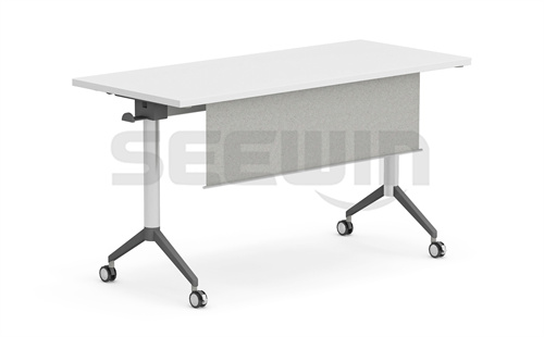 產品臺面采用 MFC 板,桌腳采用全鋁合金材質,輕巧堅韌。配置隱藏式掛鉤配件,自由伸縮,可掛放雙肩包、手提袋等。手動折疊翻轉開關,便于產品收納堆放。桌面采用鏈接設計,可組合擺放。