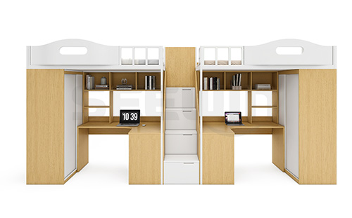 產(chǎn)品采用環(huán)保 E0 級(jí) MFC 板材,健康安全,結(jié)構(gòu)堅(jiān)固、經(jīng)久耐用。產(chǎn)品配置書(shū)柜、書(shū)桌,給學(xué)生提供獨(dú)立學(xué)習(xí)空間,衣柜、收納柜,可供學(xué)生日常生活使用。