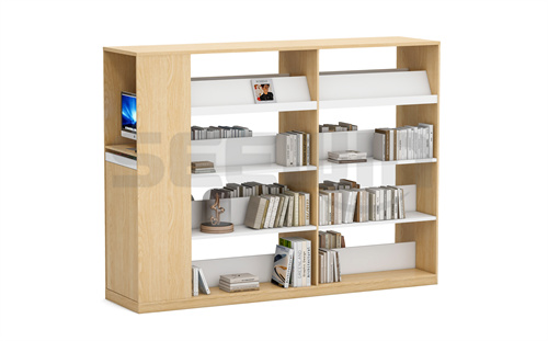 產(chǎn)品采用 E0 級 MFC 板,可搭配電子借閱系統(tǒng),使用方便便捷。最上層書架采用斜度設(shè)計,方便翻閱查看。